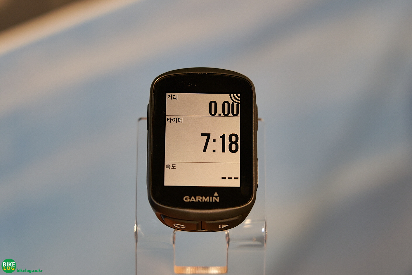 가민 엣지 130 PLUS. 우측 상단의 물결 모양은 바리아와 연결 상태를 나타낸다 |