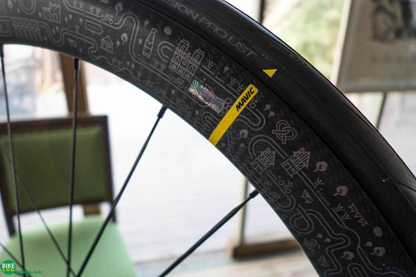 코스믹 프로 카본 SL UST 디스크 TDF2(64mm) NACA 64mm 에어포일 림으로 투르 드 프랑스를 기념하여, TDF 기념 림 데칼이 새겨진 TDF 리미티드 에디션이 출시되었다. 이번이 2번째 TDF 에디션이며, 모델별로 림 데칼 문양이 다양하게 되어 있어 보는 재미를 더 해준다. 한 예로 평지, 에어로 휠셋인 코메트는 직선형의 도로가 되어 있으며, 올라운드 모델은 코스믹은 직선과 곡선이 섞여 있고, 업힐에 강한 시리움은 곡선형의 도로가 데칼링되어 있어 데칼만 봐도 어떤 도로에 최적화 되어 있는지 확인할 수 있다. |